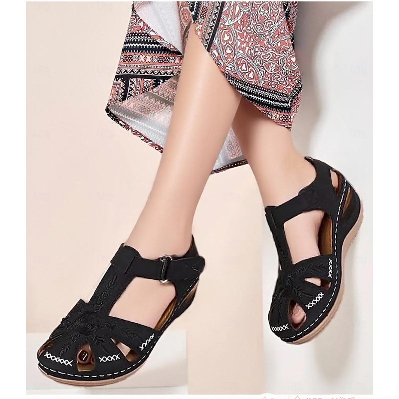 HOT ! Women's Casual Comfort Sandals – Vintage Arch Support Velcro Walking Sandals with Hollow Design for Summer & Outdoor Wear