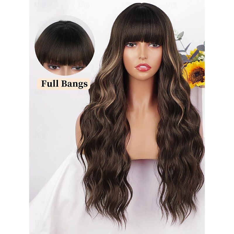 $17.49 - Brown Wig with Bangs for Women Long Wavy Hair Wig Brown Highlight Wig Curly Wavy Synthetic Wigs for Girls Daily Party Use Halloween Wigs 2025. Shop for cheap PartyΒ Wigs online? Buy at lightinthebox.com on sale today!