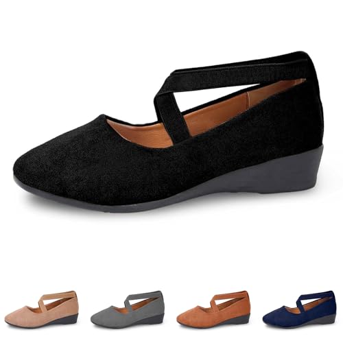 HOT ! Round Toe Women Flat Shoes Slip On Girls Dress Black Ballet Flats Comfortable Lightweight Walking and Driving Shoes Ladies Elegant Flat Footwear Flexible for Comfort
