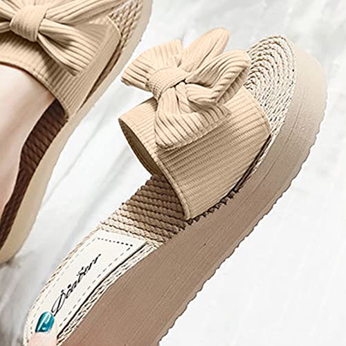 Spring Casual Sandals Summer Fashion and Beach Wedge Bow Slippers Women's Slipper Slippers for Women Indoor and Outdoor (Beige, 8) 7