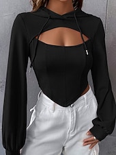 More information about Women's Pullover Hoodie Sweatshirt Hoodies Plain Fashion Streetwear Long Sleeve Hooded Regular Tops Street Going out Black Fall