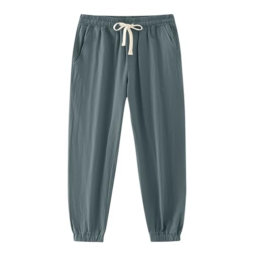 Drawstring Pants for Men Elastic Waist Jogger Pants Casual Pockets Solid Straight Trousers Breathable Trousers 5