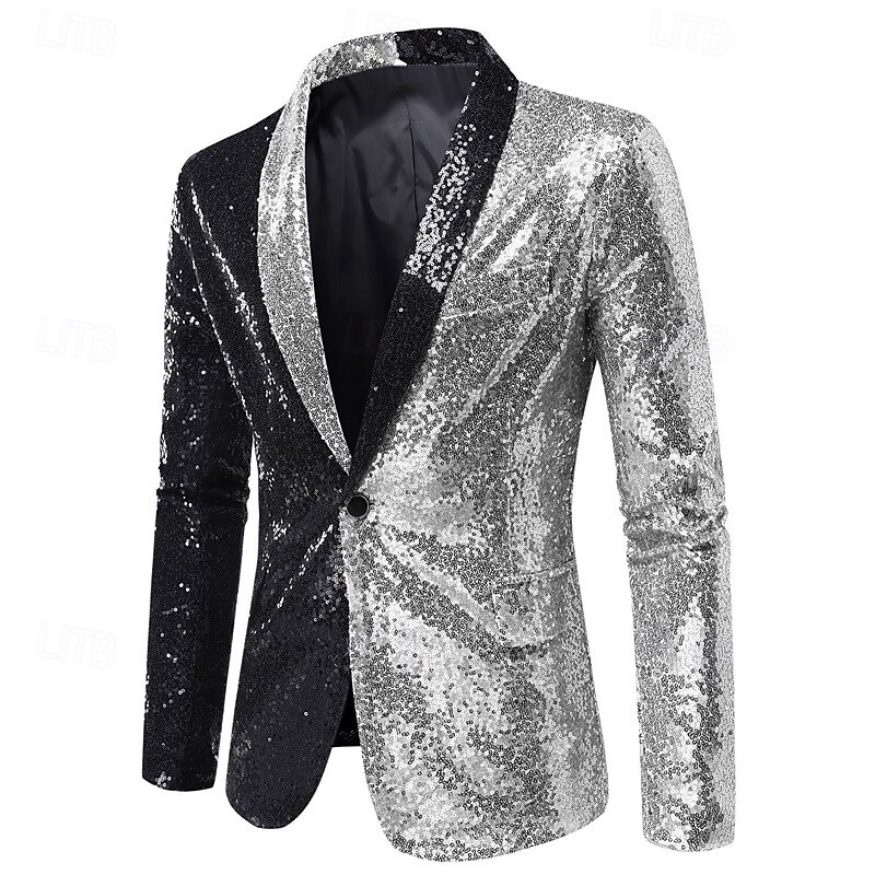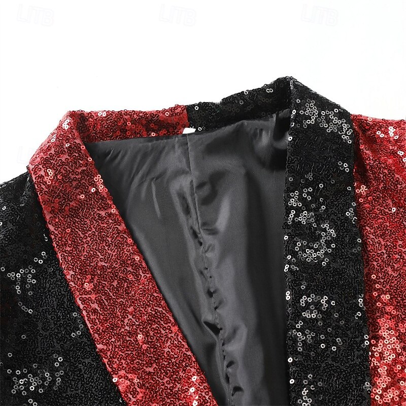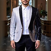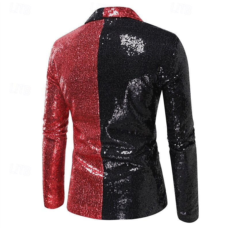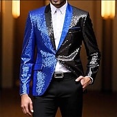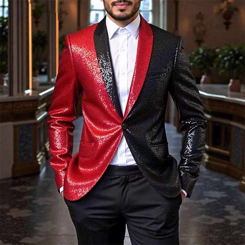 More information about Men's Blazer Business Cocktail Party Wedding Party Fashion Casual Spring Fall Polyester Color Block Pocket Buttons Comfortable Single Breasted Blazer Silver Red Blue Purple