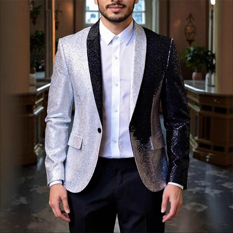 Men's Blazer Business Cocktail Party Wedding Party Fashion Casual Spring Fall Polyester Color Block Pocket Buttons Comfortable Single Breasted Blazer Silver Red Blue Purple 11
