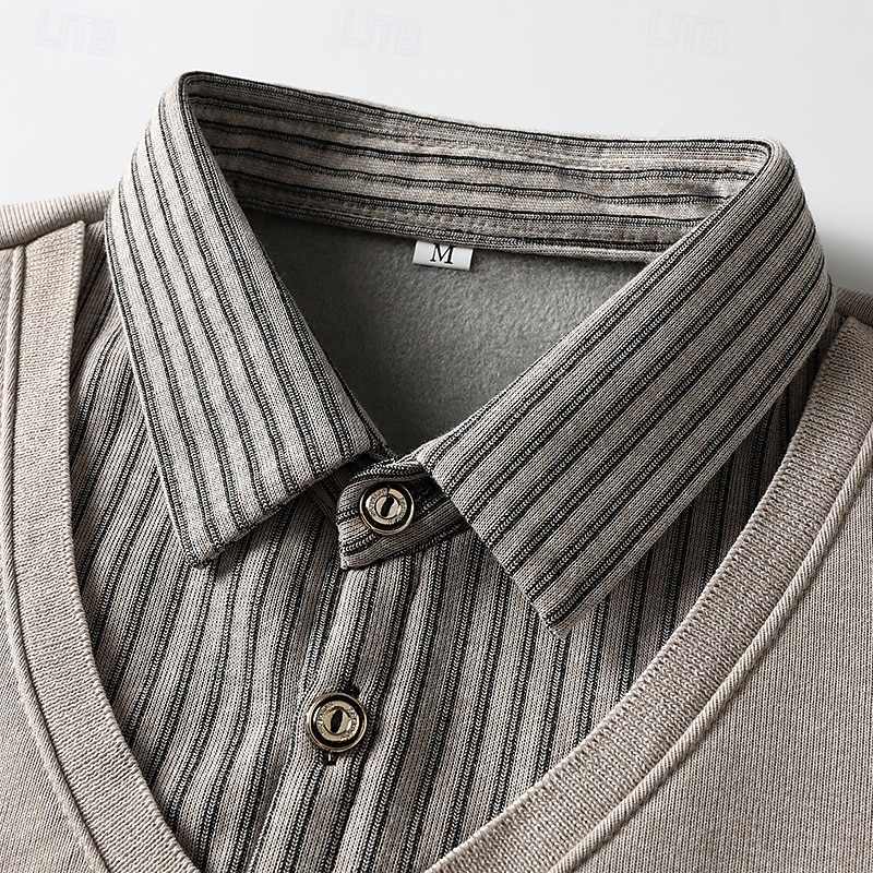 More information about Men's Pullover Sweater Jumper Knit Sweater Mens Dress Sweaters Ribbed Knit Regular Knitted Fake two piece Stripe Shirt Collar Fashion Casual Daily Wear Date Clothing Apparel Fall & Winter Black Blue