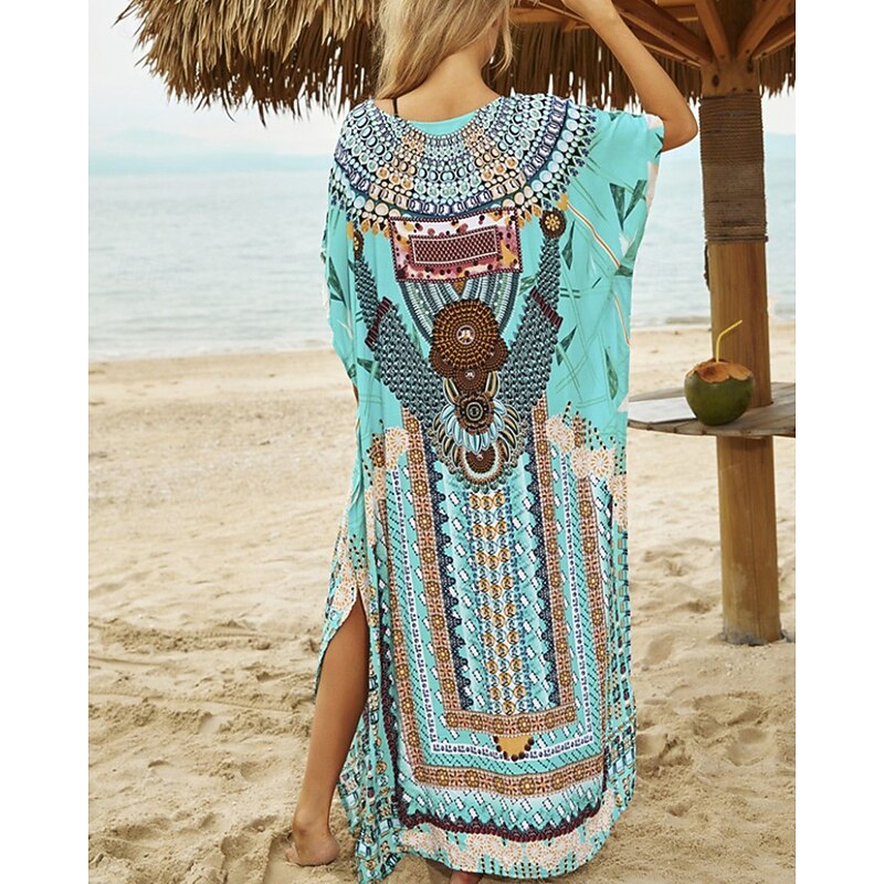 More information about Women's Swimwear Cover Up Swimsuit Tropical Beach Wear Flower Round Neck Short Sleeves Bathing Suits