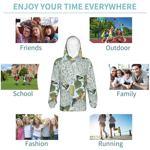 Hydrangea and Small Bird Kid Hoodies Boys Sweatshirts Girls Pullover with Pocket 7