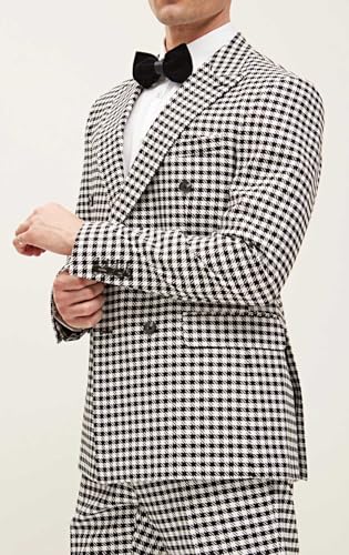 VENNYNG Men's Houndstooth Suits Two Piece Double Breasted Outfits Plaid Casual Wedding Tuxedo Jacket Pant 6