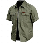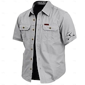 Men's Cow Print Work Shirt Western Shirt Cargo Shirt Short Sleeve Casual Tactical Sports & Outdoor Going out Summer Spring Turndown Print Army Green Khaki Dark Blue Beige 17