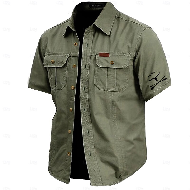 More information about Men's Cow Print Work Shirt Western Shirt Cargo Shirt Short Sleeve Casual Tactical Sports & Outdoor Going out Summer Spring Turndown Print Army Green Khaki Dark Blue Beige