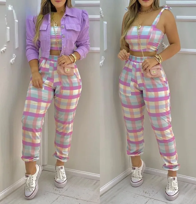 Female Short Sleeve 2pcs Outfit Summer Fashion Sexy Printed Boho Crop Top & High Waist Pants Suit