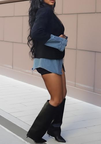 • Collocation: Casual patchwork blazer long sleeve open front denim jacket you would wear with sexy shorts and thigh high boots for a stylish look. V-neck suit jacket for women slim fit work office blazer are also available with leisure pants and flats for a casual everyday look!
