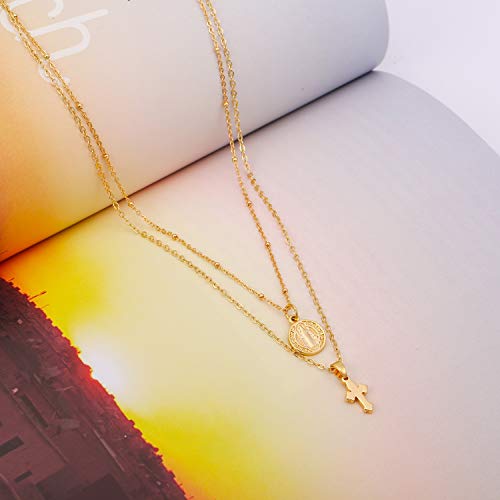 • Adjustable Chain Necklace:This gold st benedict necklace consists of double chain.The first layer is satellite bead chain has a st benedict medals pendant,the chain length is 15.7”(40cm).The second layer is rolo chain has a cross pendant,the chain length is 17.7”(45cm),Lobster clasp with 5cm extension chain,two chains share a lobster clasp.Suitable for everyone to wear. Comfort fit wear.