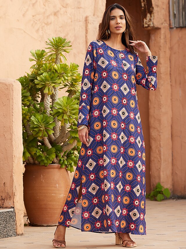 HOT ! Floral Print Crewneck Casual Dress