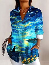 More information about Women's Shirt Button Down Tunic Shirt Collar Long Sleeve Floral Graphic Elegant Vintage Tropical Regular Tops Work Daily s Print Yellow Blue Spring