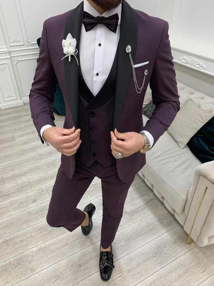 HOT ! Men's Tuxedo Suit 3 Piece Slim Fit Suits for Men Business Formal Wedding Prom Shawl Lapel Blazer Jacket Vest Pants Set