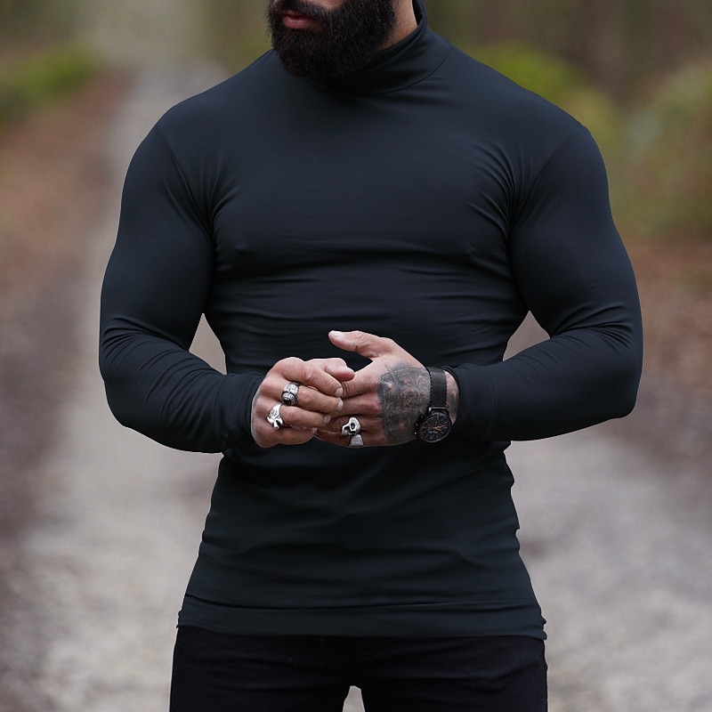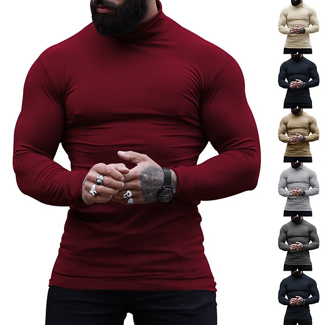 More information about Men's T Shirt Tee Top Long Sleeve Shirt Long Sleeve Turtleneck Spring & Fall Plain Fashion Designer Basic Vacation Street Going out Wine Apricot Dark Gray Top Tee for Men