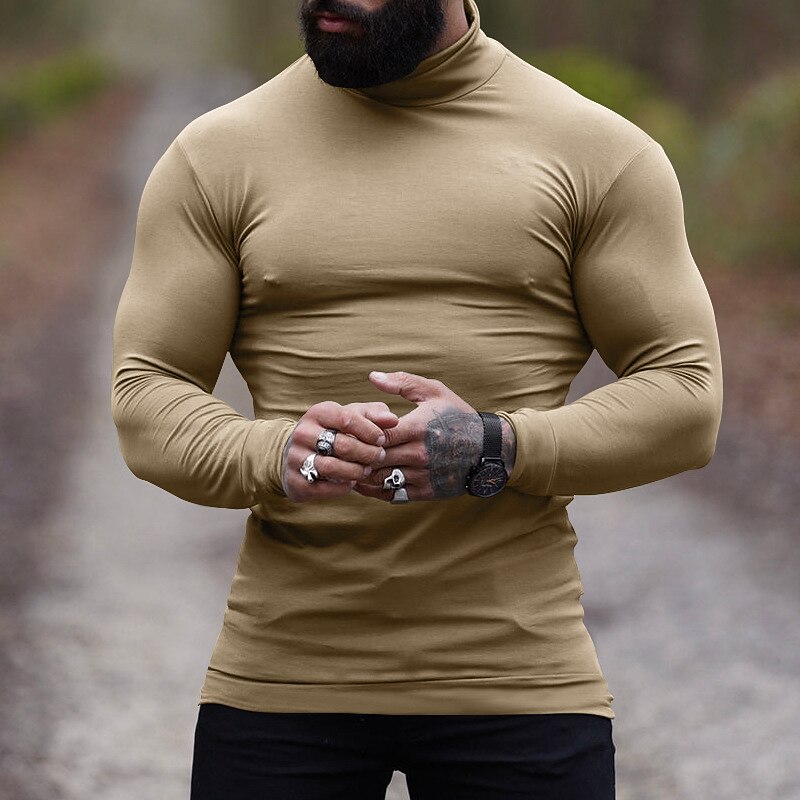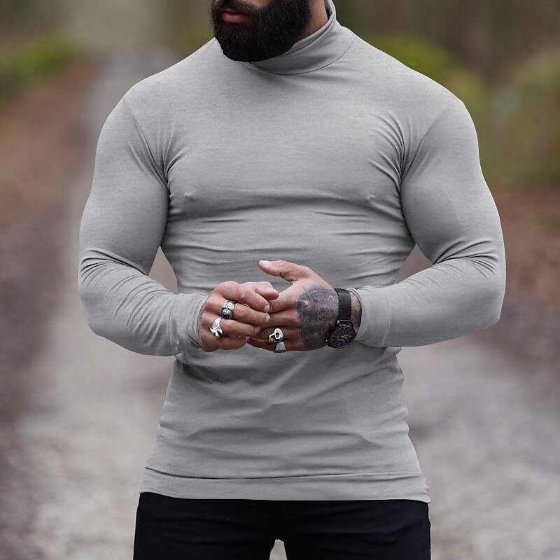 Men's T Shirt Tee Top Long Sleeve Shirt Long Sleeve Turtleneck Spring &  Fall Plain Fashion Designer Basic Vacation Street Going out Wine Apricot Dark Gray Top Tee for Men 21