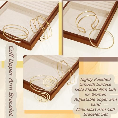 BROCC 6pcs Gold Arm Cuff Bracelet Set for Women Adjustable Coil Swirl Upper Cuff Bracelet Jewelry 4