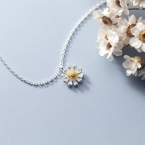 Reffeer Solid 925 Sterling Silver Flower Daisy Necklace Pendant for Women Teen Girls Flower Choker Necklace 1