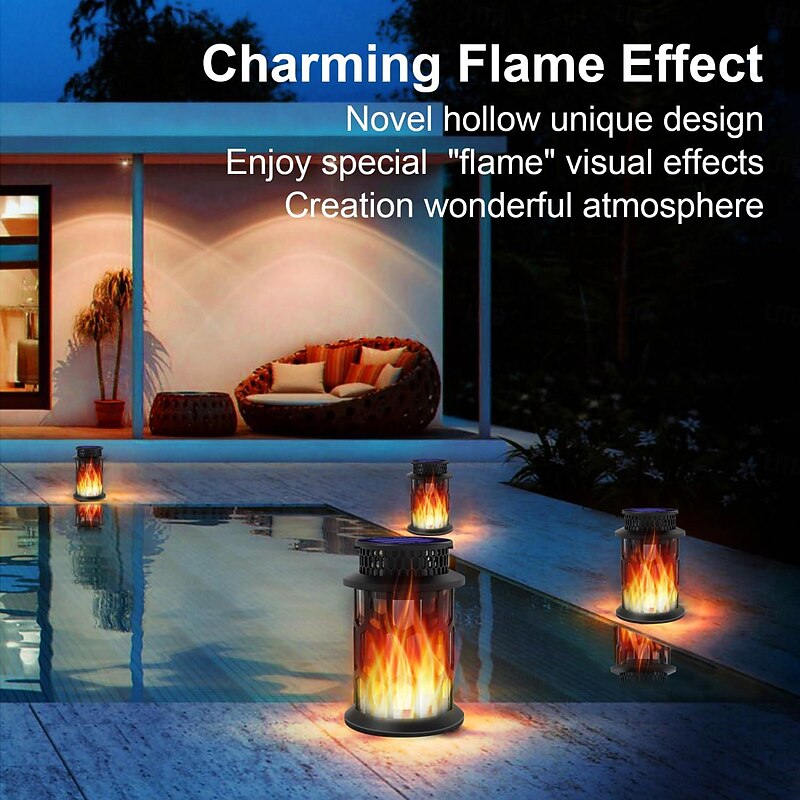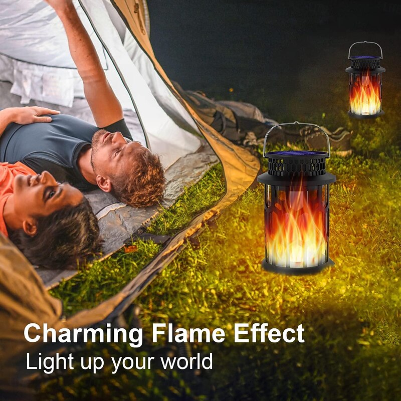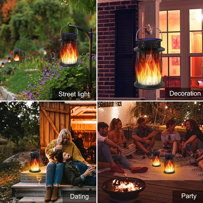 Highlights Features: Realistic Flame Solar Lanterns Design : Special designed outdoor solar lanterns that dance like real flames add a lively vibe to the silent night. Our solar lanterns will be the ideal replacement for traditional candle lanterns. Waterproof & Durable Hanging Lanterns : Made by high-quality ABS plastic with IP65 waterproof grade durable and able to withstand all kinds of weather outside(rain, snow, fog ) throughout the year. Switch Between Two Modes : Topmante hanging solar lanterns has two lighting modes that you can switch between Flickering and Steady-on at your will. Energy Saving Solar Power :Compare to traditional candle lanterns this hanging solar lights are powered by solar, much energy-saving, and environmentally friendly. Only charge for 6-8 hours at day, light up for 8-10 hours at night.