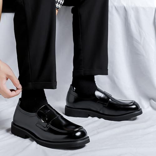 Men's Classic Leather Platform Chunky Heel Loafers Casual Round Toe Slip-On Comfort Soft Sole Formal Dress Penny Shoes for Party Wedding Business Daily Unisex 7