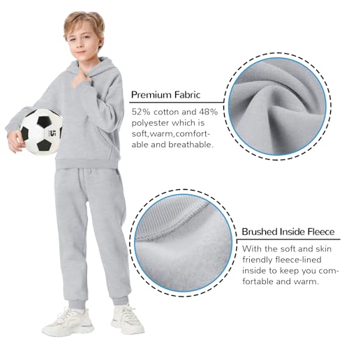 More information about QBK Toddler to Youth Soft Brushed Fleece Jogger Sweatpants Kids Pants with Pockets for Boys and Girls(Heather Grey 11-12Y )