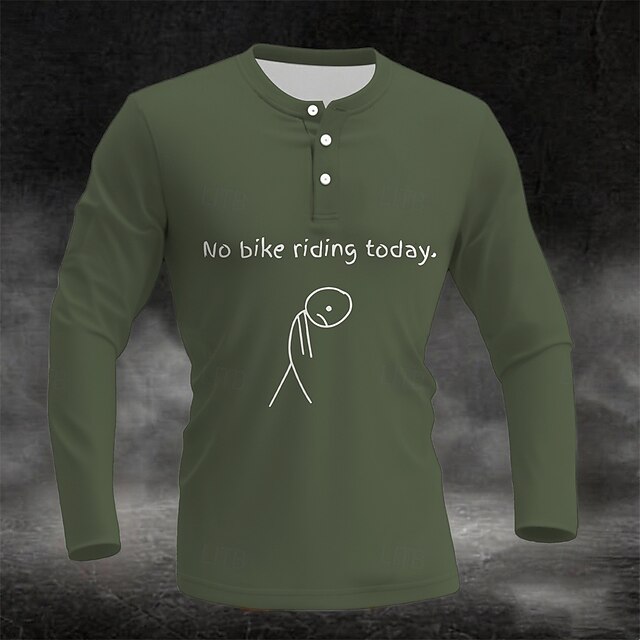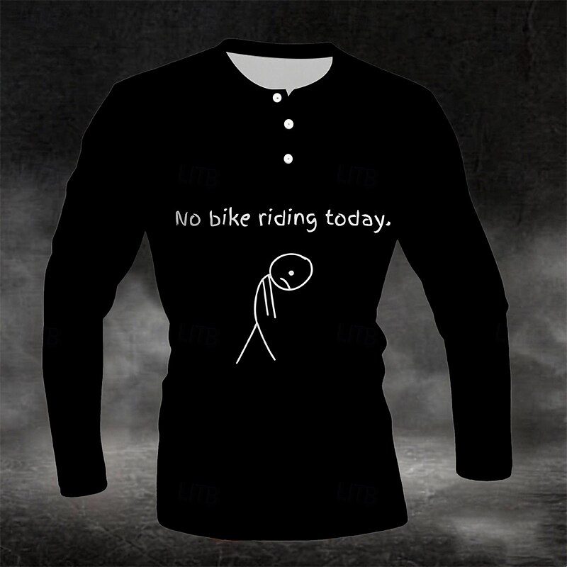 HOT ! Men's Long Sleeve Henley Graphic T-Shirt, 'No bike riding today' Funny Cycling Biker Lifestyle Design