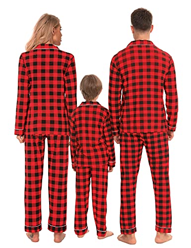 SWOMOG Family Christmas Pajamas Set Women & Men & Kids Long Sleeve Pj Set Party Sleepwear Button-Down Loungewear Set Men Red With Black Grid Large 2