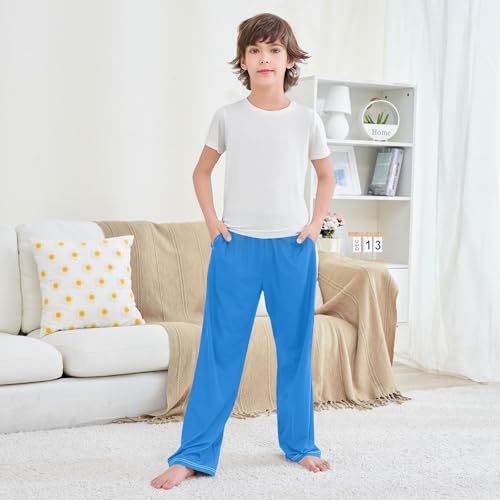 ZZXXB Sky Blue Boys Long Pants Soft Trousers Elastic Waist Kids Lounge Bottoms with Pockets S-XL 1