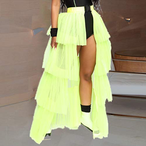 HOT ! WDPL Women's Layers of Buckle Belt Slit High Waisted Evening Night Out Tulle Skirt