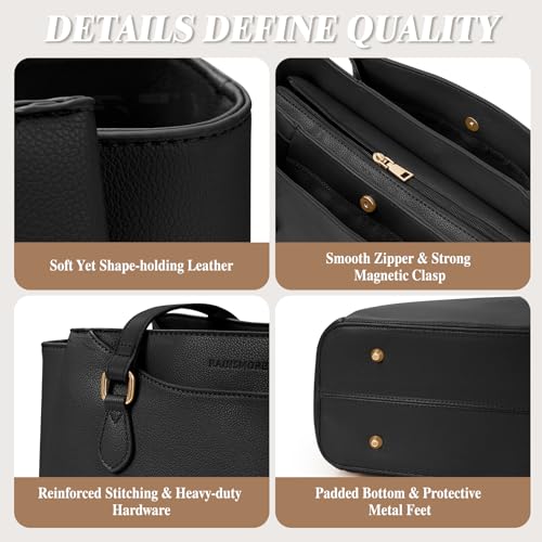 • CHIC AND PRACTICAL LAPTOP BAG FOR WOMEN: This is a laptop tote bag for women who do not want to compromise between function and style. The minimalist chic appearance makes this leather tote bag a work-ready and casual pick. Pair perfectly with casual outfit, formal outfit, high heel or flat. The smooth zipper, reinforced stitching, and the exquisite and durable hardware, among other details, make this women's bag stand the test of time.