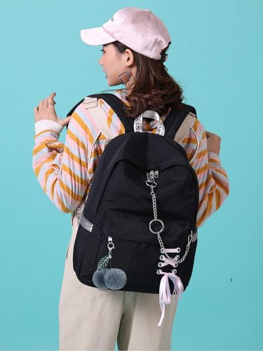• Bookbag for Girls: Experience superior comfort and safety through ergonomic engineering and adjustable reinforced padded straps.Discover thoughtful brilliance in the keychain and butterfly knot accents.Designed for self-expression: transitions seamlessly between emo backpack, gothic backpack,cute backpack and aesthetic backpack.