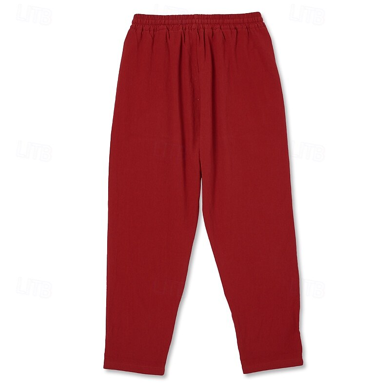 More information about Men's Linen Pants Trousers Summer Pants Embroidered Drawstring Elastic Waist Flowers Comfort Breathable Full Length Outdoor Casual Holiday Fashion Retro Vintage Red