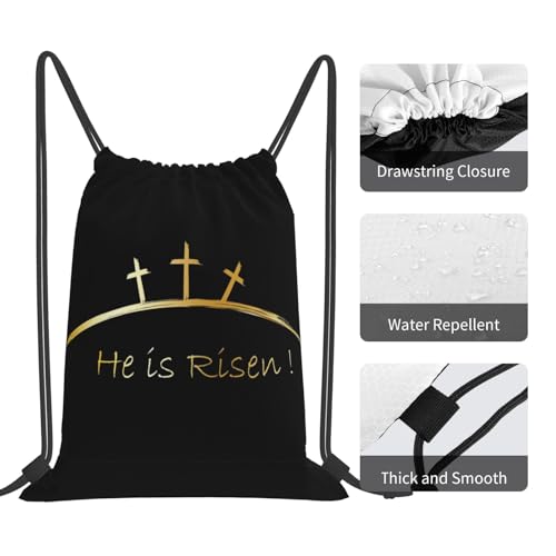 • 【Multi Purpose】This He Is Risen Happy Easter Day Drawstring Backpack Is Suitable For A Variety Of Occasions, Such As Swimming,Yoga, Travel, Camping, Shopping, Walking, Etc.