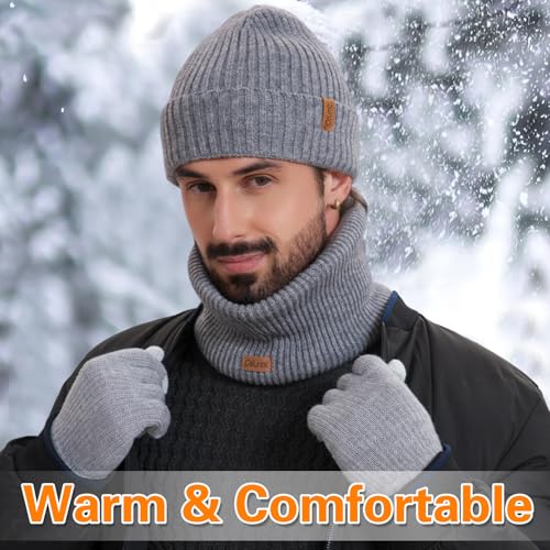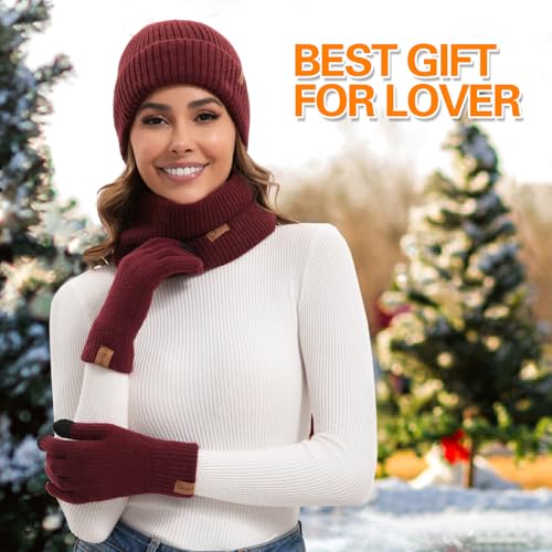 3 Pieces Winter Hat Scarf Touchscreen Gloves Set for Men and Women, Thick Warm Fleece Lined Knit Beanie Hat Neck Warmer 3
