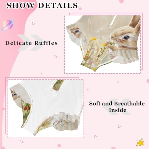 Flowers Rabbit Oil Painting Girls Long Sleeve Swimsuit Rash Guard One Piece Bathing Suits Zipper 3-12T 4