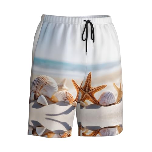 HOT ! Beach Theme Print Men's Beach Pants Lightweight Quick-Dry Swim Pants with Mesh Lining for Men