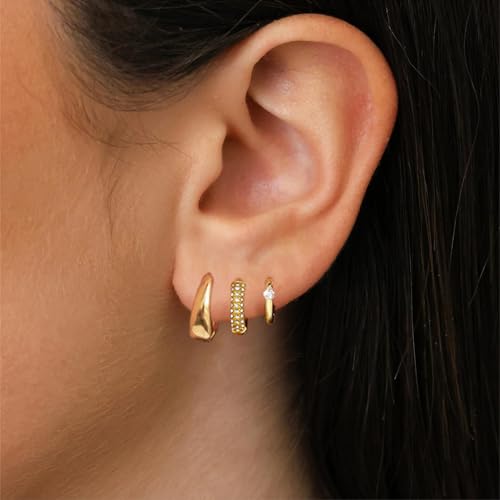 • ❤Earrings for Women Trendy❤ -This exquisite set of gold earrings offers a versatile trio of styles. It includes a timeless gold hoop, a sparkling pave hoop design, and a pair of elegant Cubic Zirconia studs. Perfect for every event, these earrings will complement any outfit and meet all your fashion requirements.