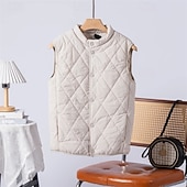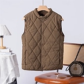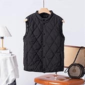More information about Women's Puffer Jacket Quilted Jacket Casual Jacket Comfortable Breathable Pocket Buttons Casual Plain Vacation Street Casual Daily Wear Single Breasted Short Stand Collar Regular Fit Sleeveless