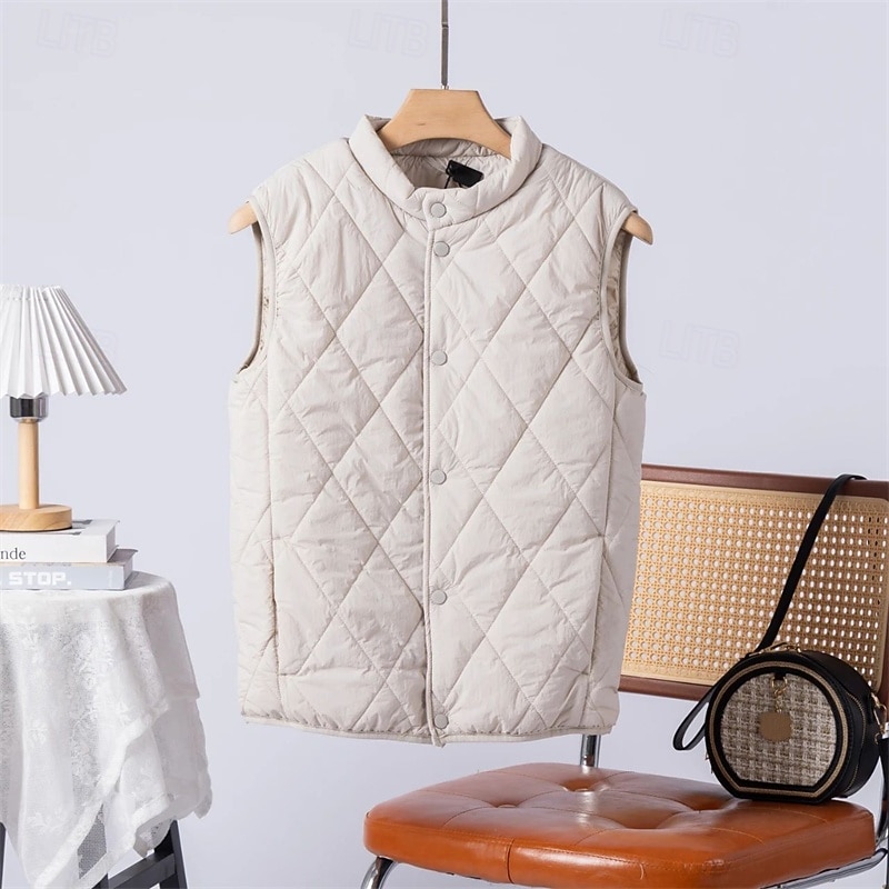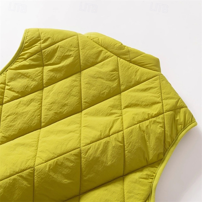 Women's Puffer Jacket Quilted Jacket Casual Jacket Comfortable Breathable Pocket Buttons Casual Plain Vacation Street Casual Daily Wear Single Breasted Short Stand Collar Regular Fit Sleeveless 1