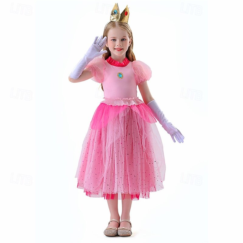 Princess Peach Halloween Cosplay Costume Masquerade Halloween Kid's Girls' Halloween Children's Day Carnival Halloween Easy Halloween Costumes Dress Up 5