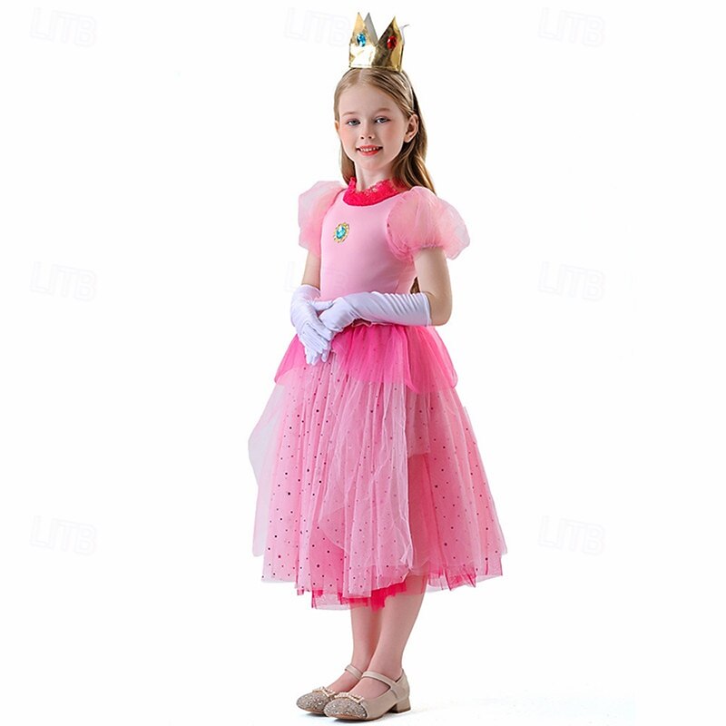 Princess Peach Halloween Cosplay Costume Masquerade Halloween Kid's Girls' Halloween Children's Day Carnival Halloween Easy Halloween Costumes Dress Up 6