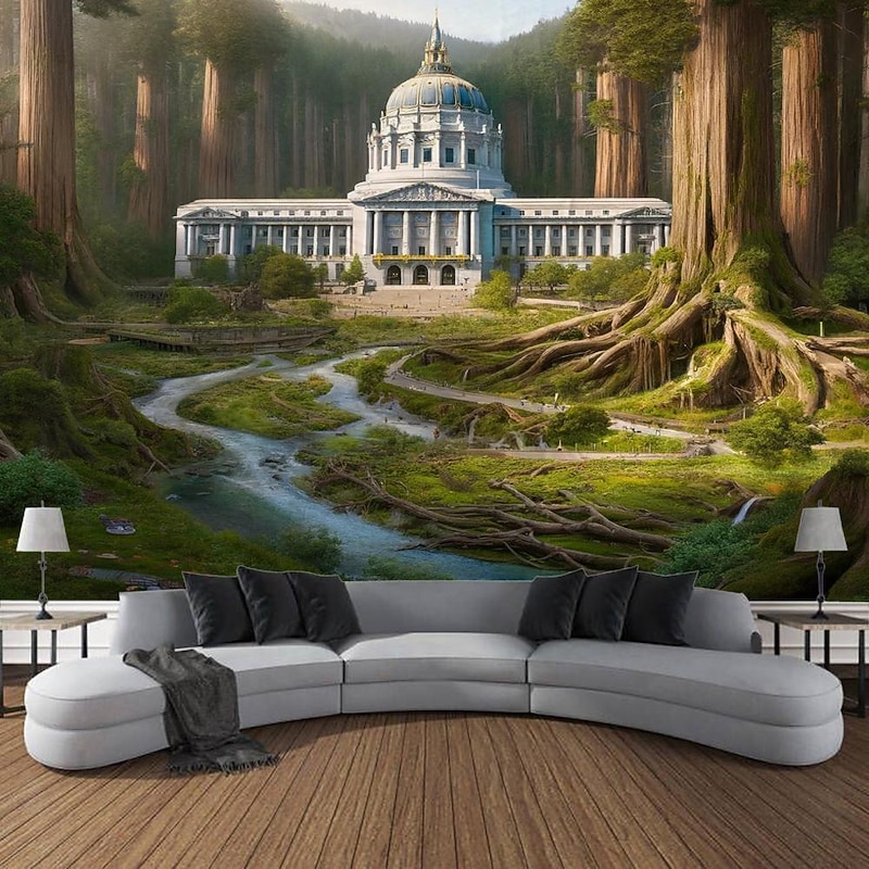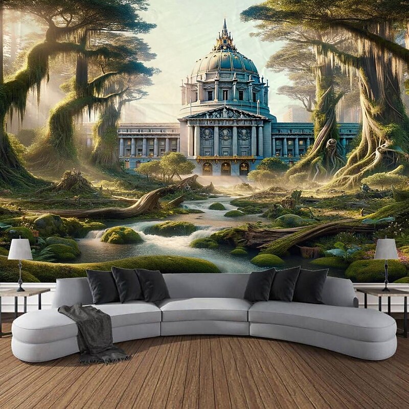 HOT ! Architecture inside Forest Hanging Tapestry Wall Art Large Tapestry Mural Decor Photograph Backdrop Blanket Curtain Home Bedroom Living Room Decoration