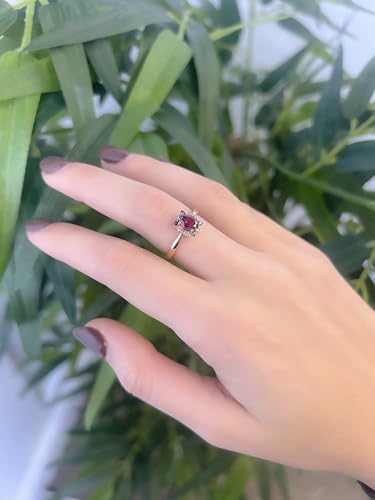 LE VIAN 1 Carat Multi Stone Oval Halo Ring for Women in 14k Rose Gold I Rhodolite Garnet, White Sapphire, Smoky Quartz I Wedding Promise Anniversary Ring Size 7