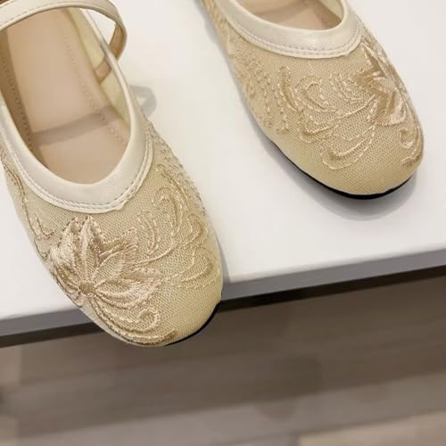 HOT ! WENJIAZHIZHI Women's Round Toe Embroidered Ballet Flats Retro Dressy Buckle Flat Shoes Elegant Wedding Soft Slip-Ons for Women