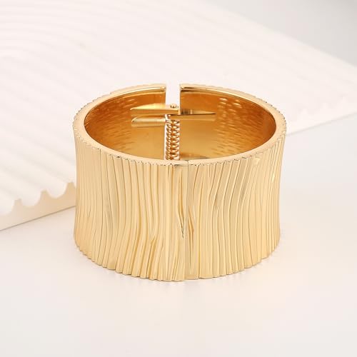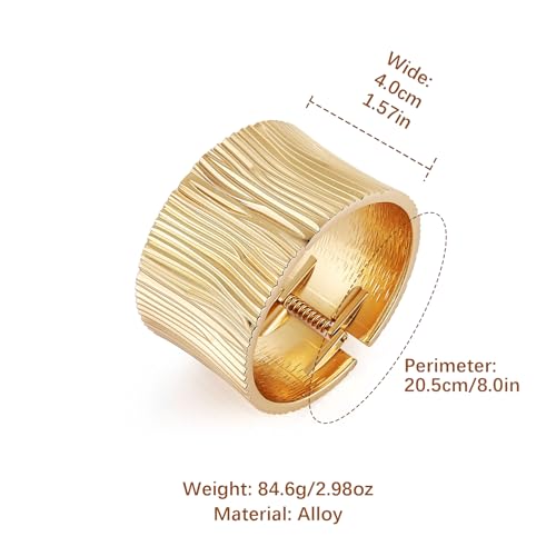 HOT ! HZMAN 8.0Inch Chunky Bracelets for Women Thick Wide Bangle Bracelet Oversize Textured Open Hinge Wrist Cuff Bracelet Jewelry Gift