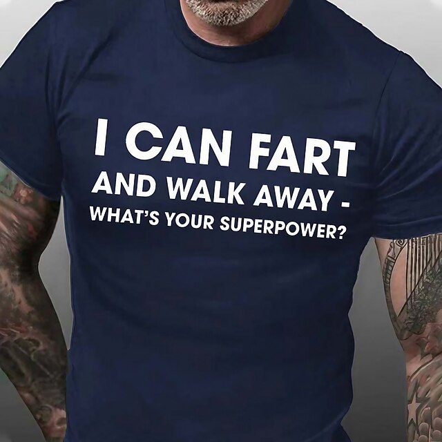 HOT ! Men's Funny Graphic T-Shirt: 'I Can Fart And Walk Away - What's Your Superpower?' Short Sleeve Humor Tee for Lifestyle & Gag Gifts