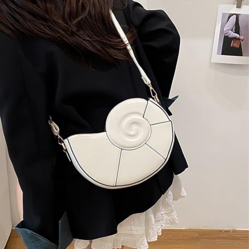HOT ! Nautilus Shell Shaped Crossbody Bag, PU Leather Stylish Half - Moon Shoulder Purse, Novelty Conch Small Round Bag Clutch