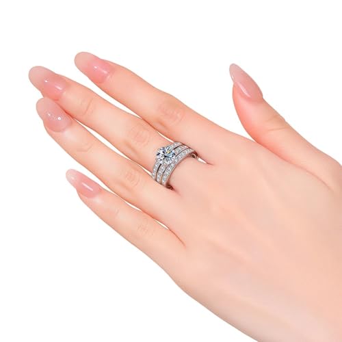 3-Piece Wedding Ring Set for Women with Gift Box, 18K White Gold Plated CZ Engagement Rings, Affordable Promise Bridal Jewelry Gift R366 3